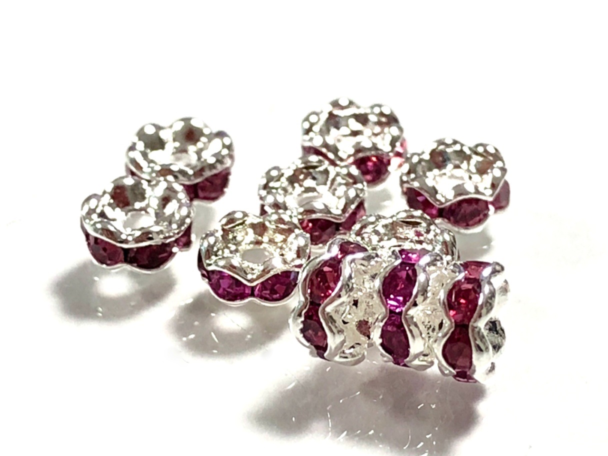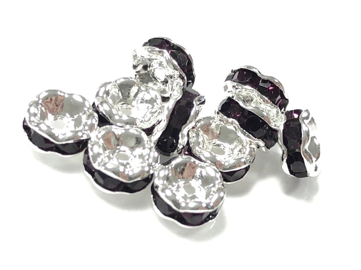 【激安】パーツ・副資材/ロンデル/シルバー&ダークパープル/6mm/波型/10個