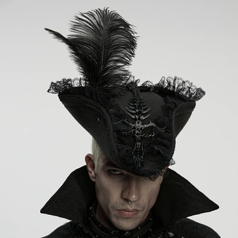 glareshop グレアショップ「F」ZH124-man-B■ゴシック スケルトン トライコーン フェザー パイレーツ ハット ...