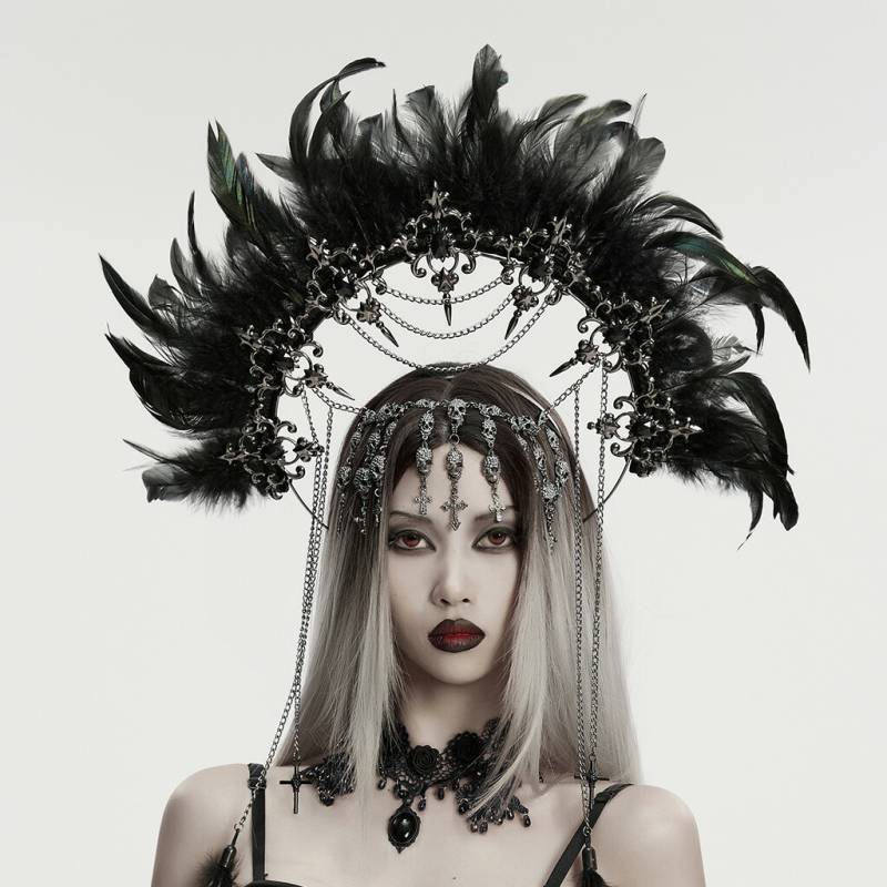glareshop グレアショップ「F」ZH131-B+■ゴシック女神ヘイローフェザーヘアフープ 黒 レディース | ヴィジュアル...