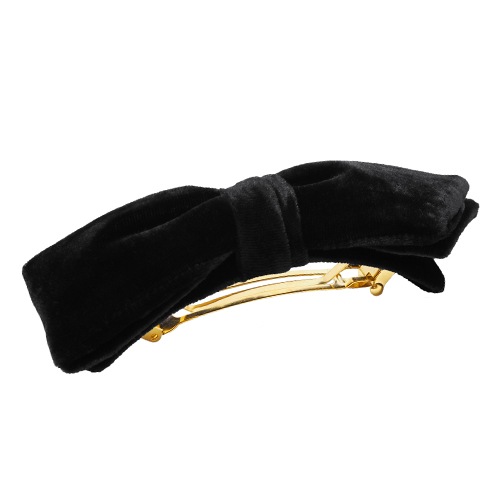 ベロア バミューダ ボウ ボリューム バレッタ (ブラック)