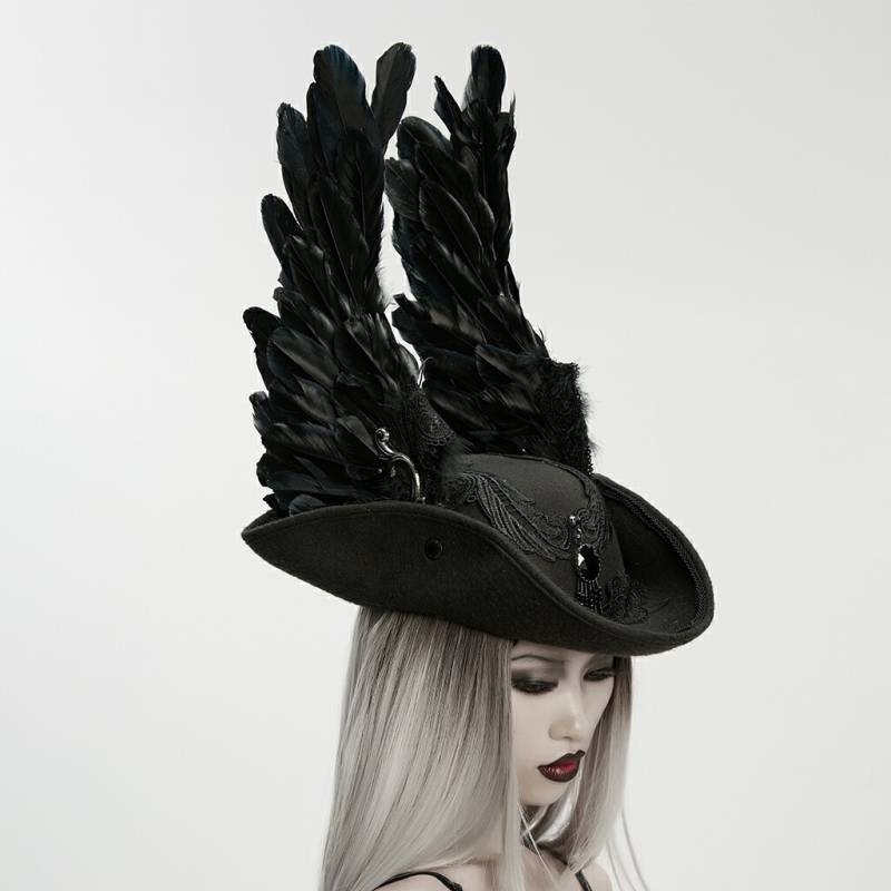 glareshop グレアショップ「F」ZH124-B■ゴシック スケルトン トライコーン フェザー パイレーツ ハット 黒 レデ...