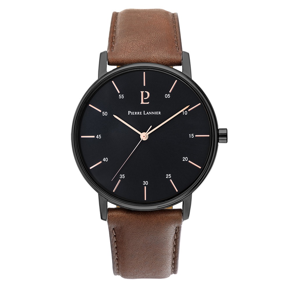 Essential エッセンシャル メンズ 腕時計 クオーツ 革ベルト 黒文字盤 ブラウン