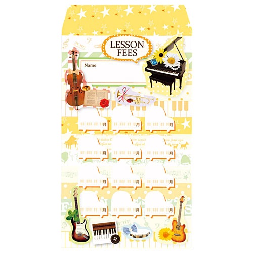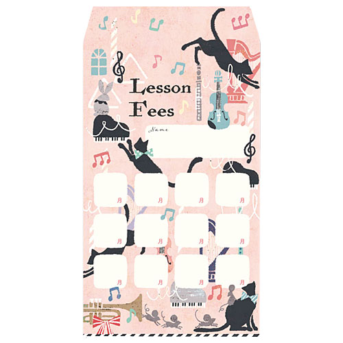 月謝袋「音楽とネコ」(10枚入り)【会費袋/集金袋】
