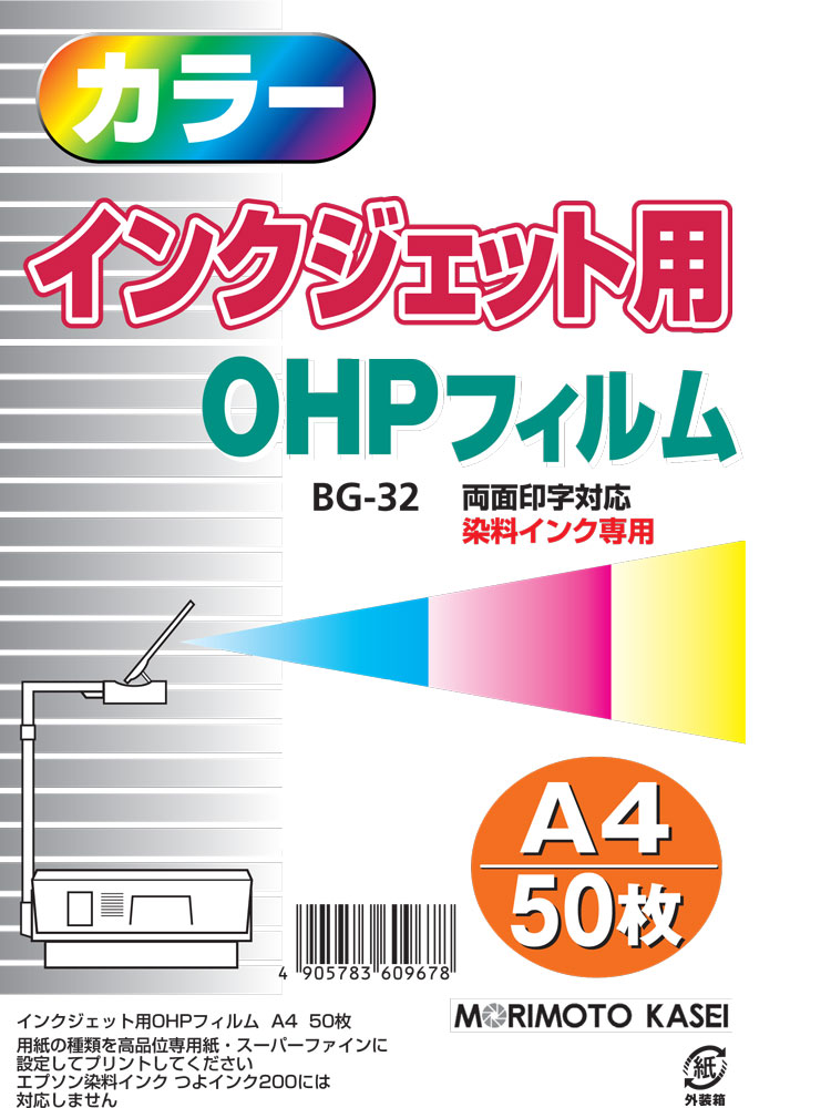 BG32 A4(50枚)インクジェットプリンタ専用OHPフィルム両面 染料インク【直送】