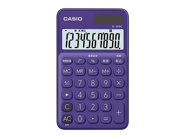 [SL-300C-PL-N] カラフル電卓 手帳タイプ パープル 10桁