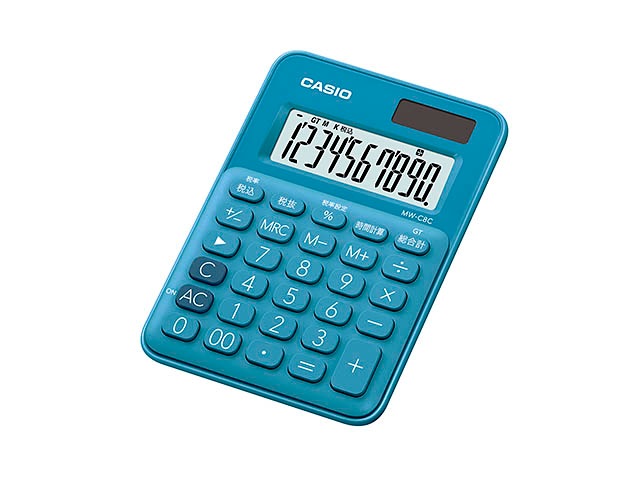 [MW-C8C-BU-N] カラフル電卓 ミニミニジャストタイプ レイクブルー 10桁