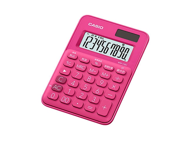 [MW-C8C-RD-N] カラフル電卓 ミニミニジャストタイプ ビビッドピンク 10桁