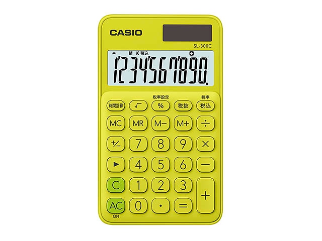 [SL-300C-YG-N] カラフル電卓 手帳タイプ ライムグリーン 10桁