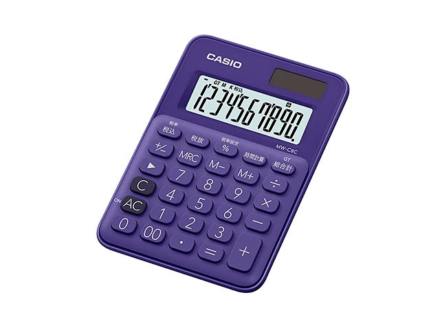 [MW-C8C-PL-N] カラフル電卓 ミニミニジャストタイプ パープル 10桁