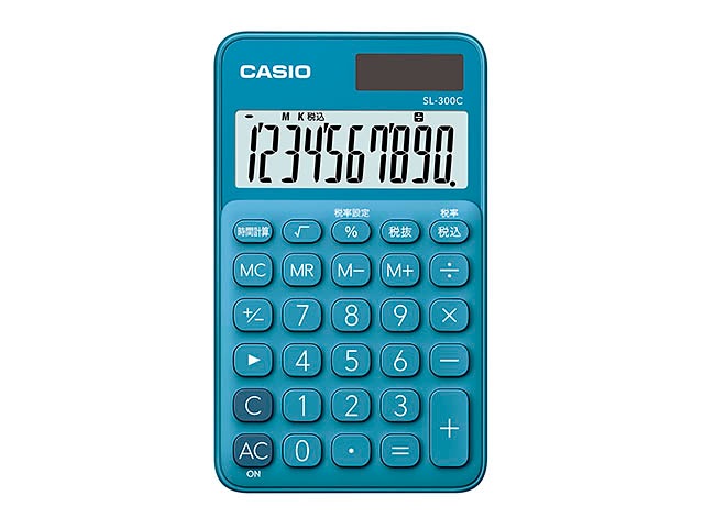 [SL-300C-BU-N] カラフル電卓 手帳タイプ レイクブルー 10桁