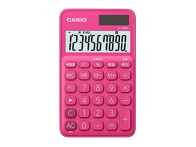 [SL-300C-RD-N] カラフル電卓 手帳タイプ ビビッドピンク 10桁