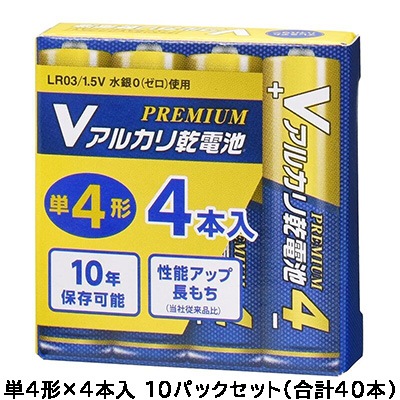 LR03PN4P【4本入り10パックセット/合計40本】 || アルカリ乾電池 OHM Vシリーズ プレミアムハイパワータイプ <...