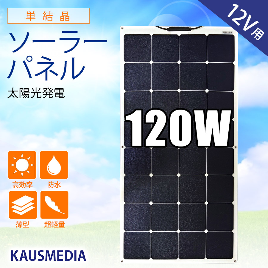 サンパワー 社製 高効率セル対応 120W ソーラーパネル セミフレキシブル 単結晶 薄型 軽量 12Vバッテリー 蓄電 Sunp...