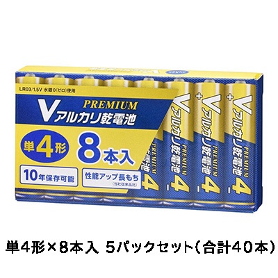 LR03PN8P【8本入り5パックセット/合計40本】 || アルカリ乾電池 OHM Vシリーズ プレミアムハイパワータイプ <単...