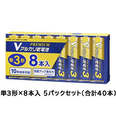 LR6PN8P【8本入り5パックセット/合計40本】 || アルカリ乾電池 OHM Vシリーズ プレミアムハイパワータイプ <単3...