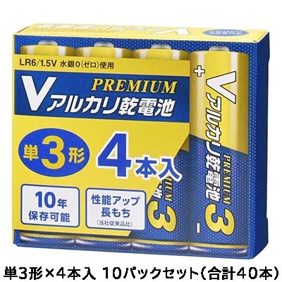 LR6PN4P【4本入り10パックセット/合計40本】 || アルカリ乾電池 OHM Vシリーズ プレミアムハイパワータイプ <単...