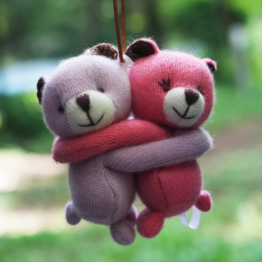 高級カシミヤ製の縁結びハグベア。 ローズ&マジェンタ・ベビー・ハグベア【8cm】