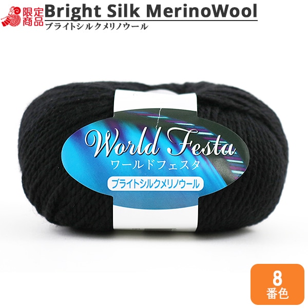 秋冬毛糸 『ブライトシルクメリノウール 8 (ブラック) 番色』 World Festa ワールドフェスタ【ユザワヤ限定商品】