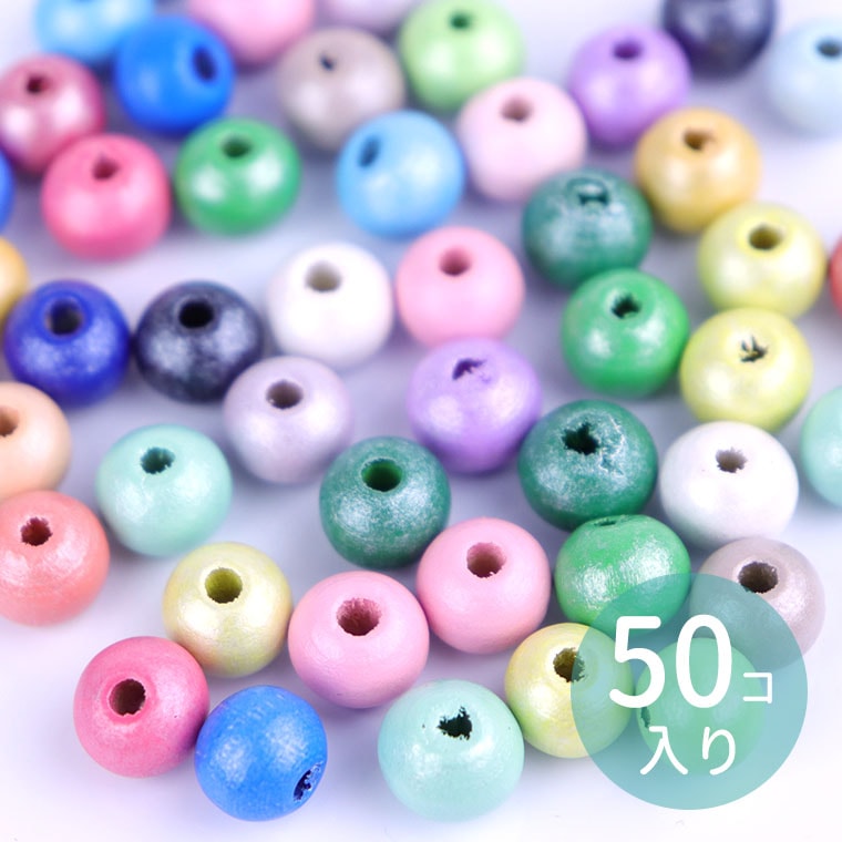 8mm×7mm 50個入 ウッドビーズ 球形 アソート メタリックカラー / 木製 オーナメント ポップ ミックス MIX ニス...