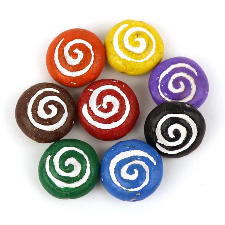 【アウトレット】1個入 インドビーズ 粘土 平丸形 グルグル ぐるぐる / ビーズ ハンドメイド 手作り アクセサリー ピアス ネ...