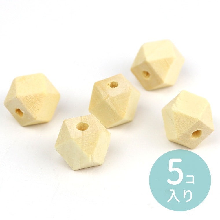 11mm×12mm ナチュラルウッドビーズ 多面体 穴3mm 5個入 / 木製ビーズ 木のビーズ 木製 オーナメント 無垢 木目 ...