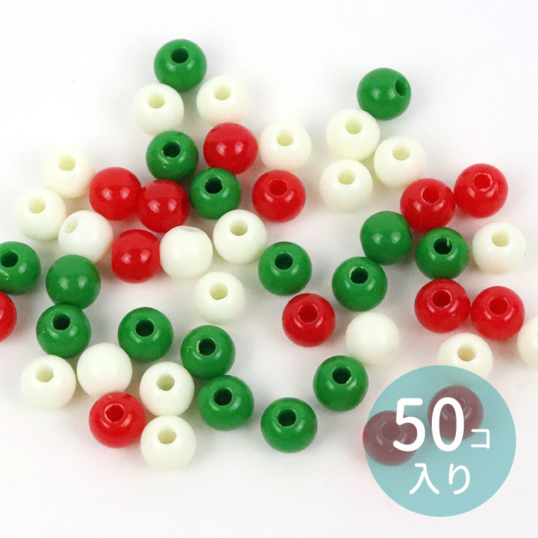 約6mm 50個入 アクリルビーズ 球形 クリスマスカラー 3色 アソート 穴約1.8mm / クリスマス ホワイト 白 レッド...