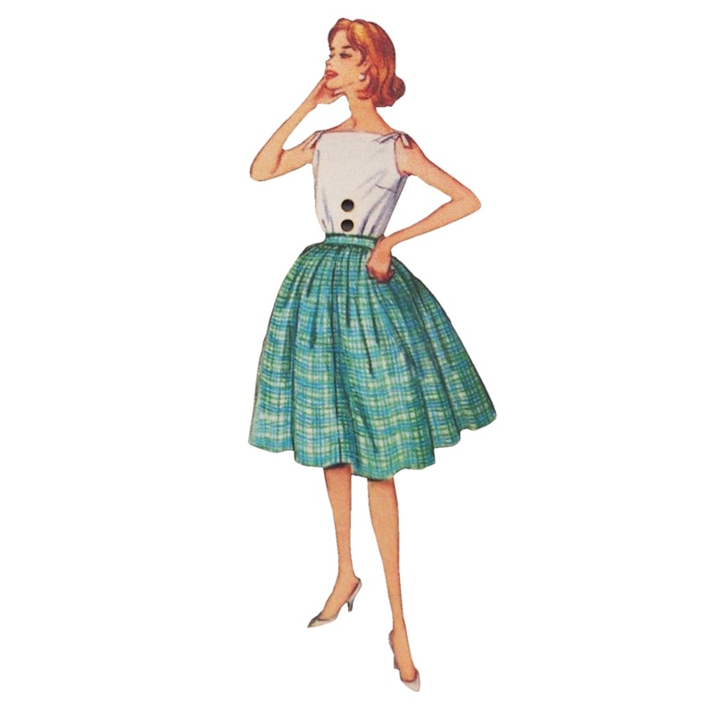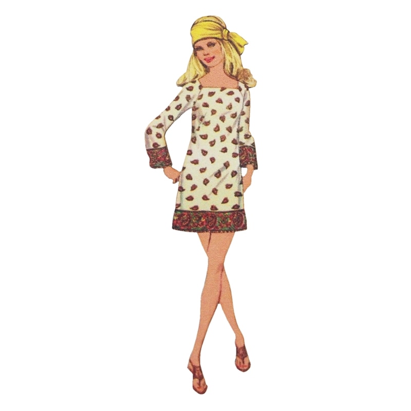 フランス製 木製ボタン 2つ穴 (緑のスカートの女性) アトリエ・ボヌール・ドゥ・ジュール