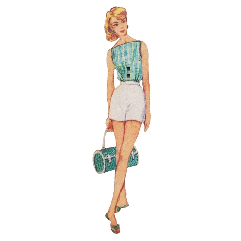 フランス製 木製ボタン 2つ穴 (ショートパンツの女性) アトリエ・ボヌール・ドゥ・ジュール