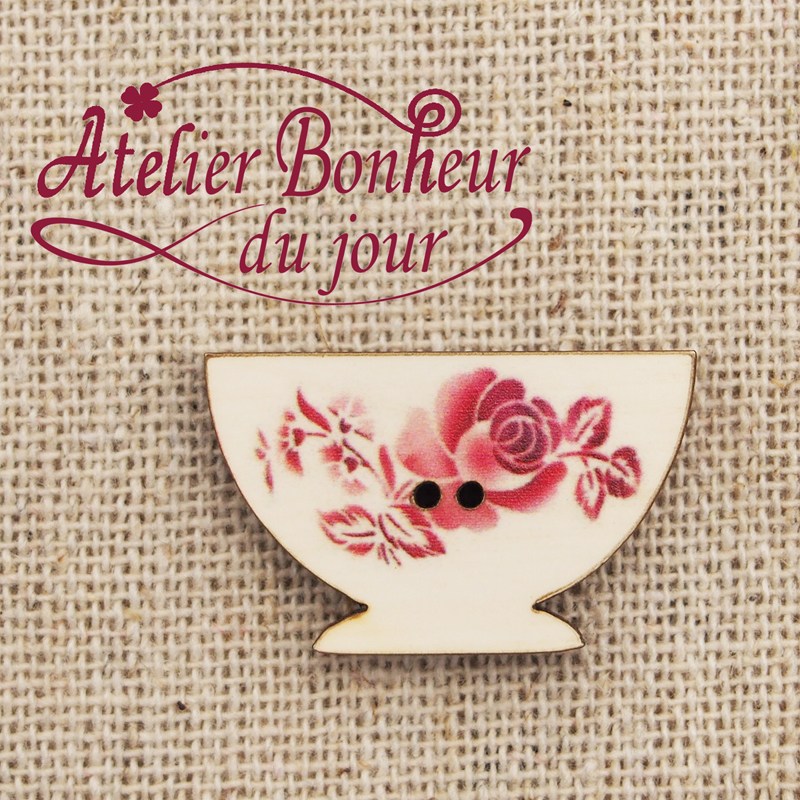 フランス製 木製ボタン 2つ穴 (カップケーキ×ストロベリー) アトリエ・ボヌール・ドゥ・ジュール
