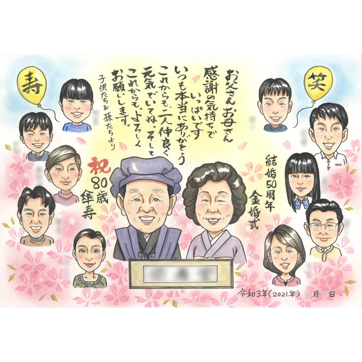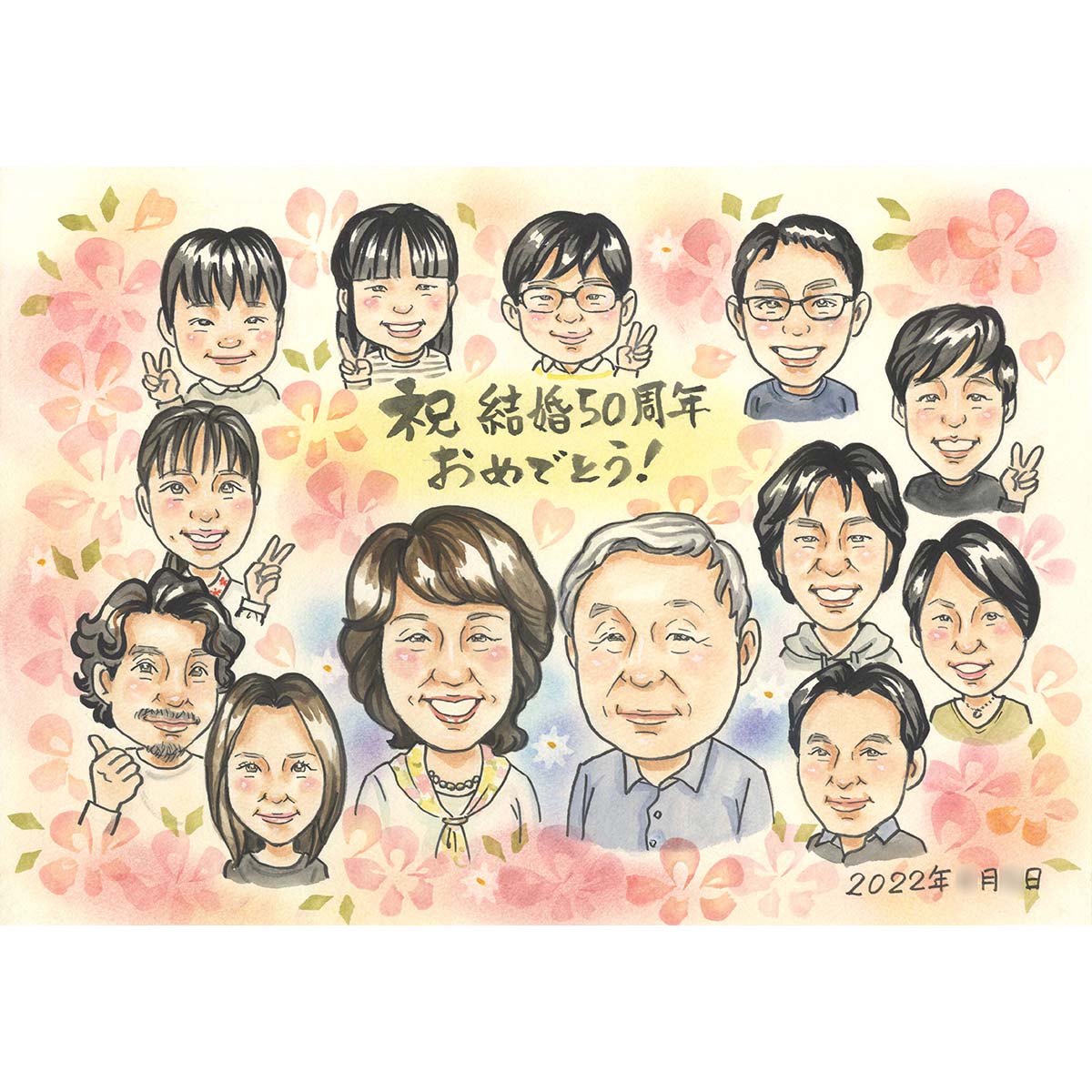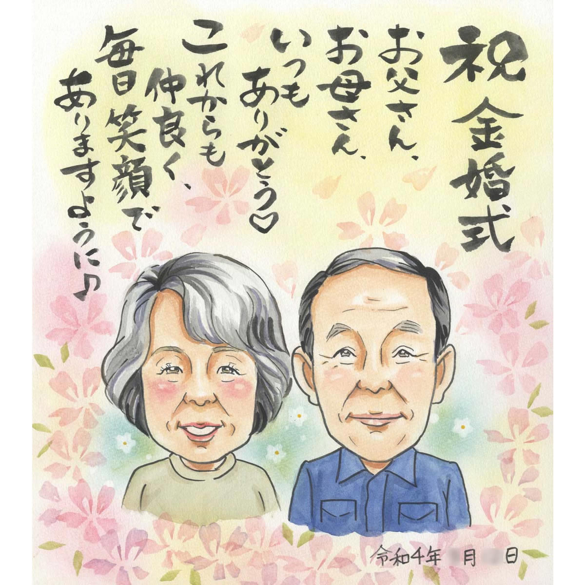 50周年記念日に贈る両親への似顔絵プレゼント 感動の両親似顔絵ギフト