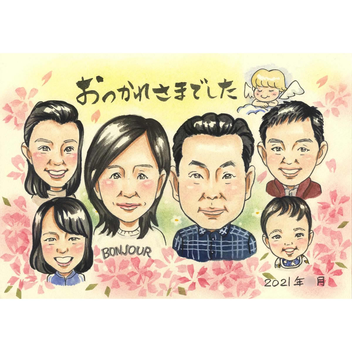 みんなの笑顔をいつも近くで感じられる家族勢揃いのお祝い似顔絵 還暦祝い他 お父さん お母さん おじいちゃん おばあちゃん 日頃の感...