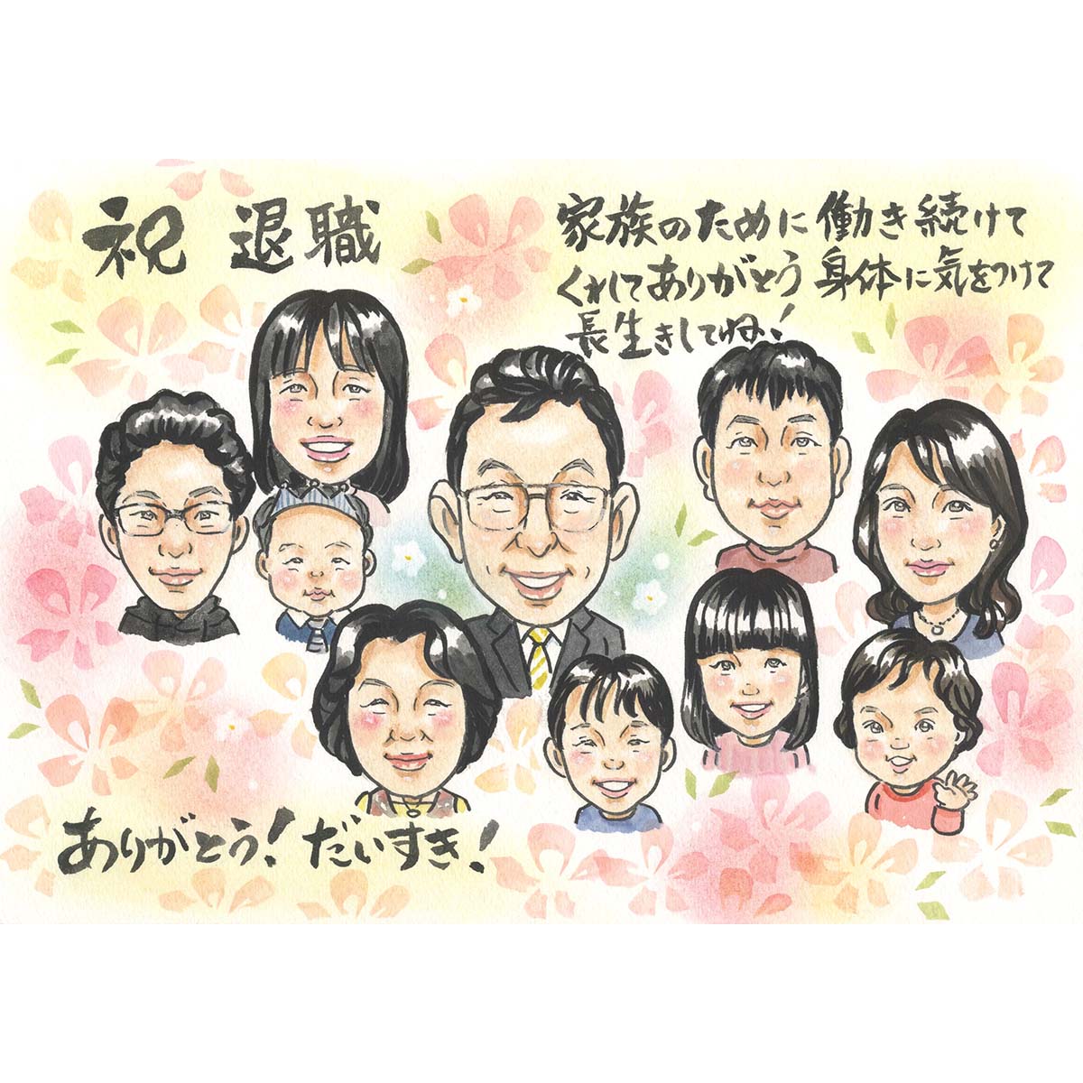 退職のお祝いに感謝の気持ちを贈りませんか?ご両親、上司、恩師、先生に 家族 似顔絵 仕事着 ユニフォーム スーツ 仕事仲間 COS...