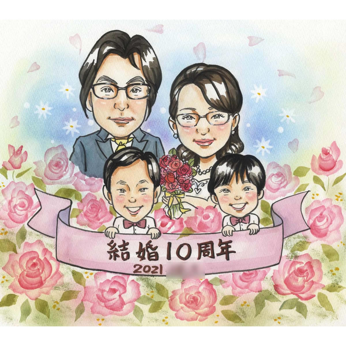 記念すべき10周年!夫婦で、家族で、写真とはひと味違う似顔絵制作しませんか? 妻 夫 夫婦 スイートテン 結婚10周年 錫婚式 ア...