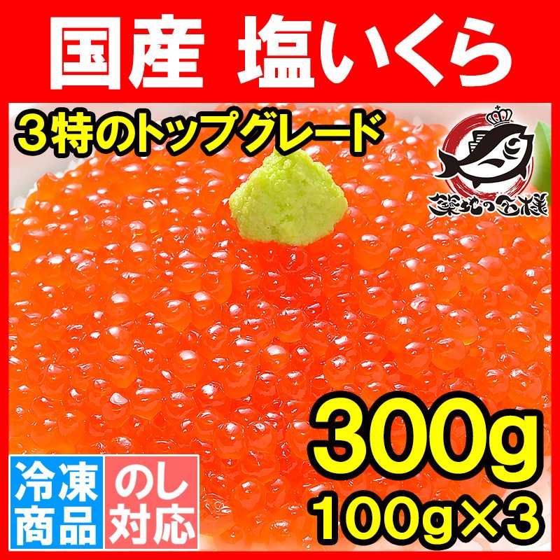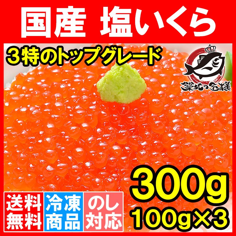 送料無料 塩イクラ 300g 100g×3パック 厳選の国産3特グレードの本格塩イクラ いくら