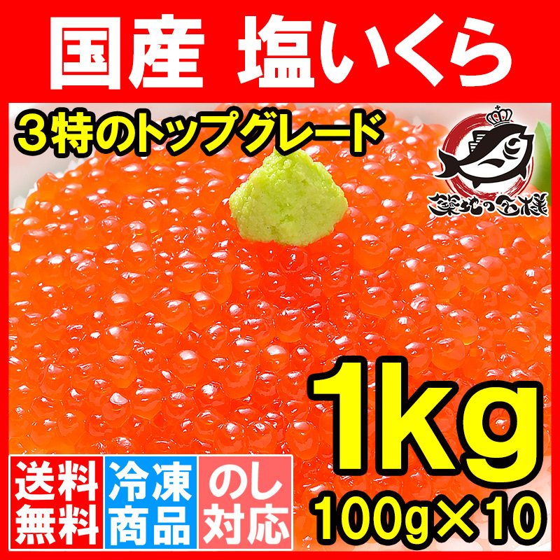送料無料 塩イクラ 1kg 100g×10パック 厳選の国産3特グレードの本格塩イクラ いくら
