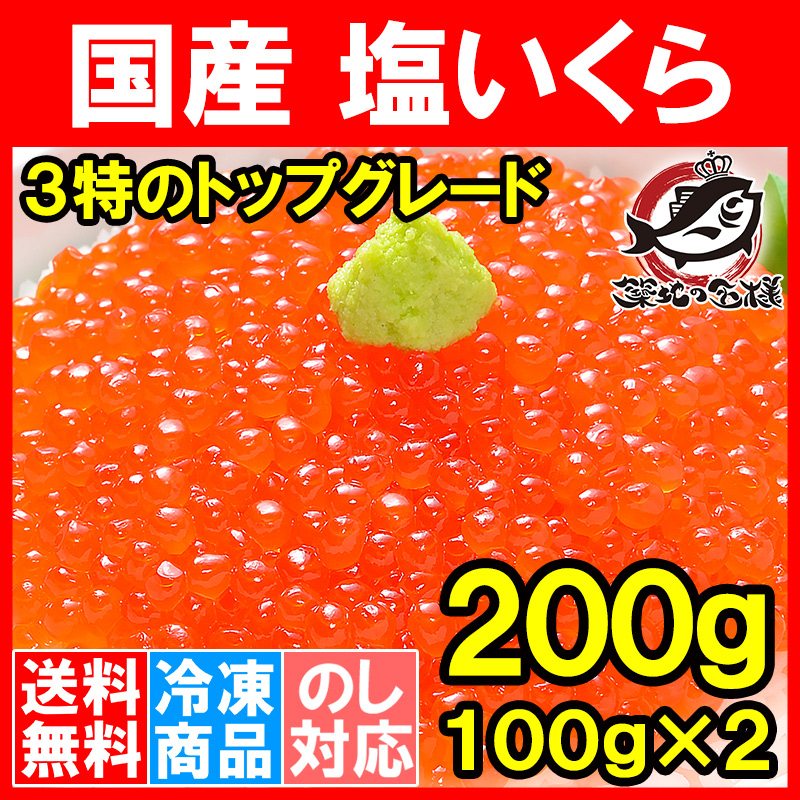 送料無料 塩イクラ 200g 100g×2パック 厳選の国産3特グレードの本格塩イクラ いくら