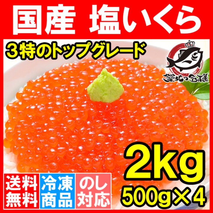 送料無料 塩イクラ 塩いくら 合計2kg 500g×4 3特クラス
