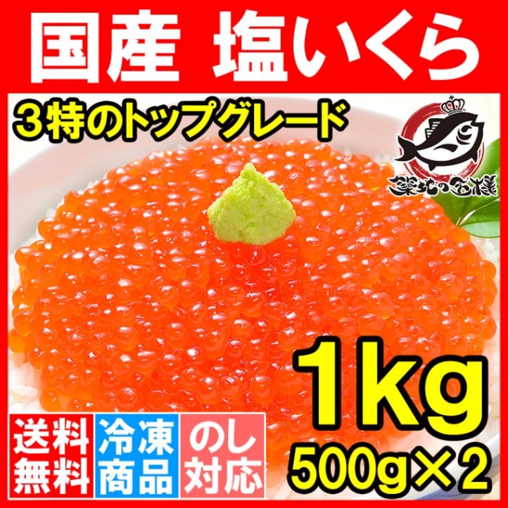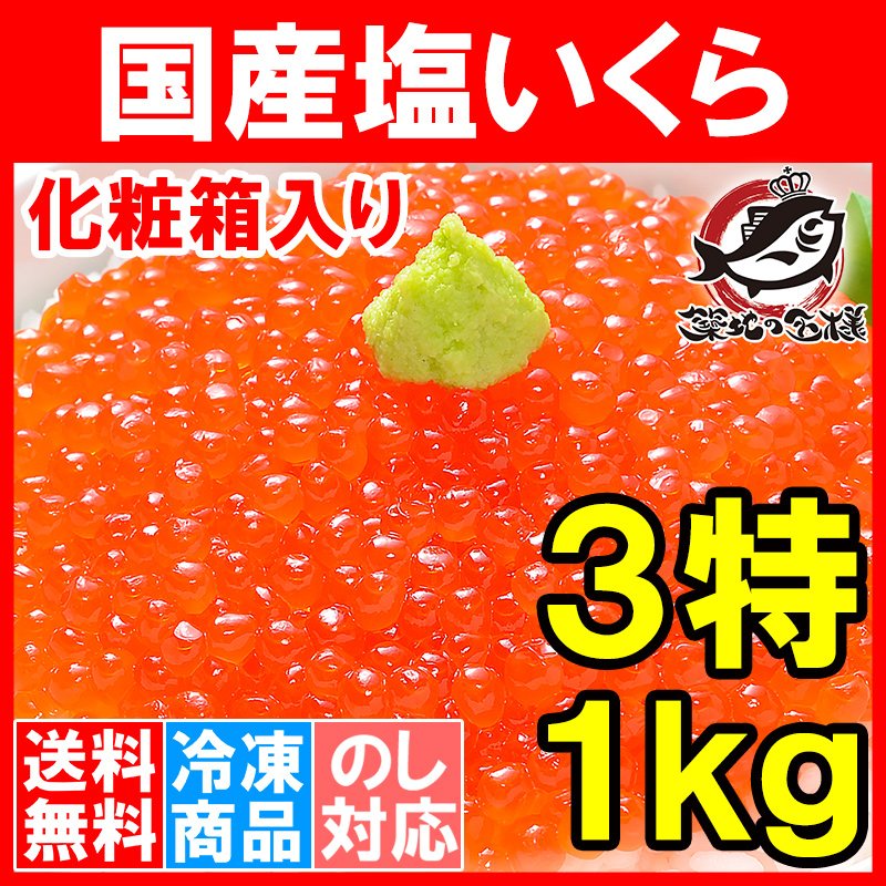 送料無料 塩イクラ 塩いくら 1kg 化粧箱入り 厳選の国産3特グレードの本格塩イクラ いくら
