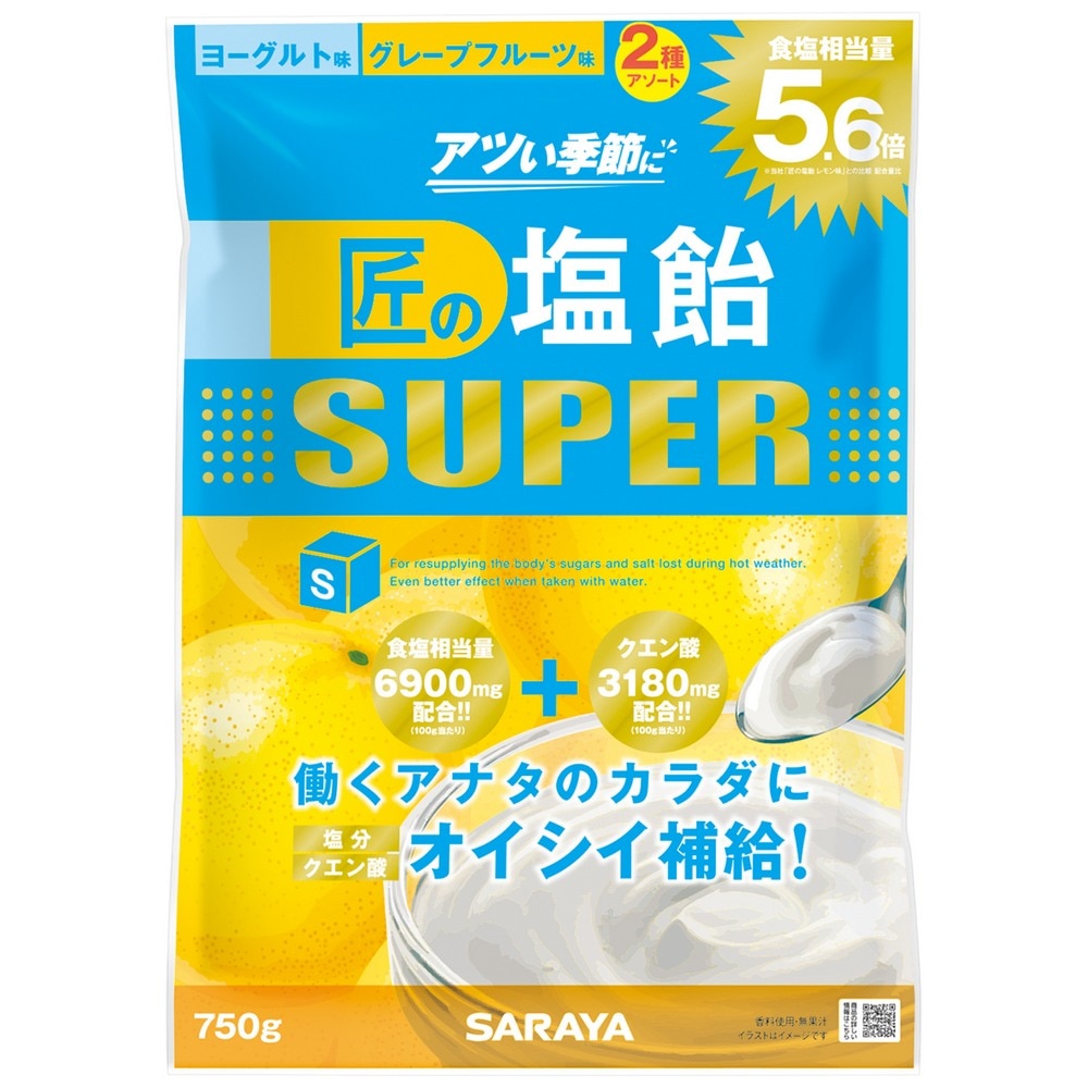 【完売しました】サラヤ 匠の塩飴スーパー 2種アソート(ヨーグルト味・グレープフルーツ味) 750g×10袋入●ケース販売お徳用【...