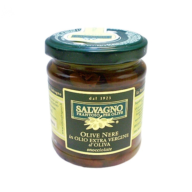 ブラックオリーブの実 185g オイル漬け 種なし SALVAGNO サルバーニョ