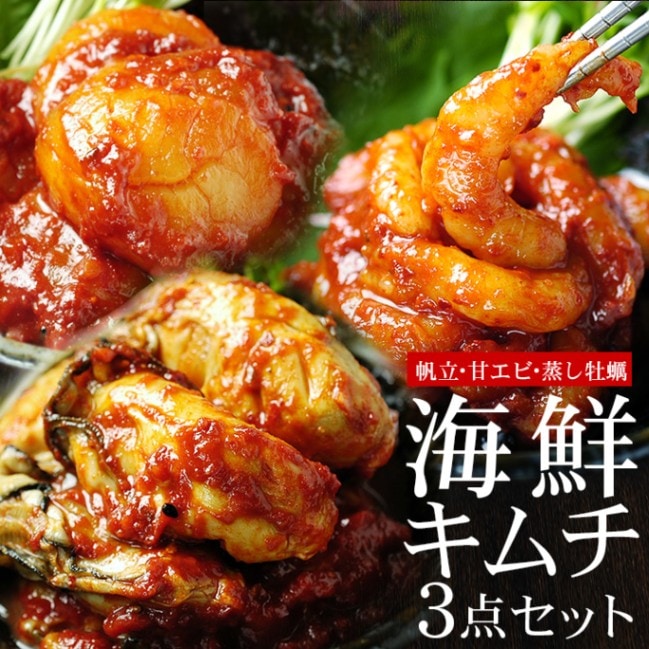 海鮮キムチ完璧セット キムチ名人・金基福ハルモニの旨辛キムチ(ホタテ貝柱キムチ300g、蒸し牡蠣キムチ300g、甘エビキムチ200...