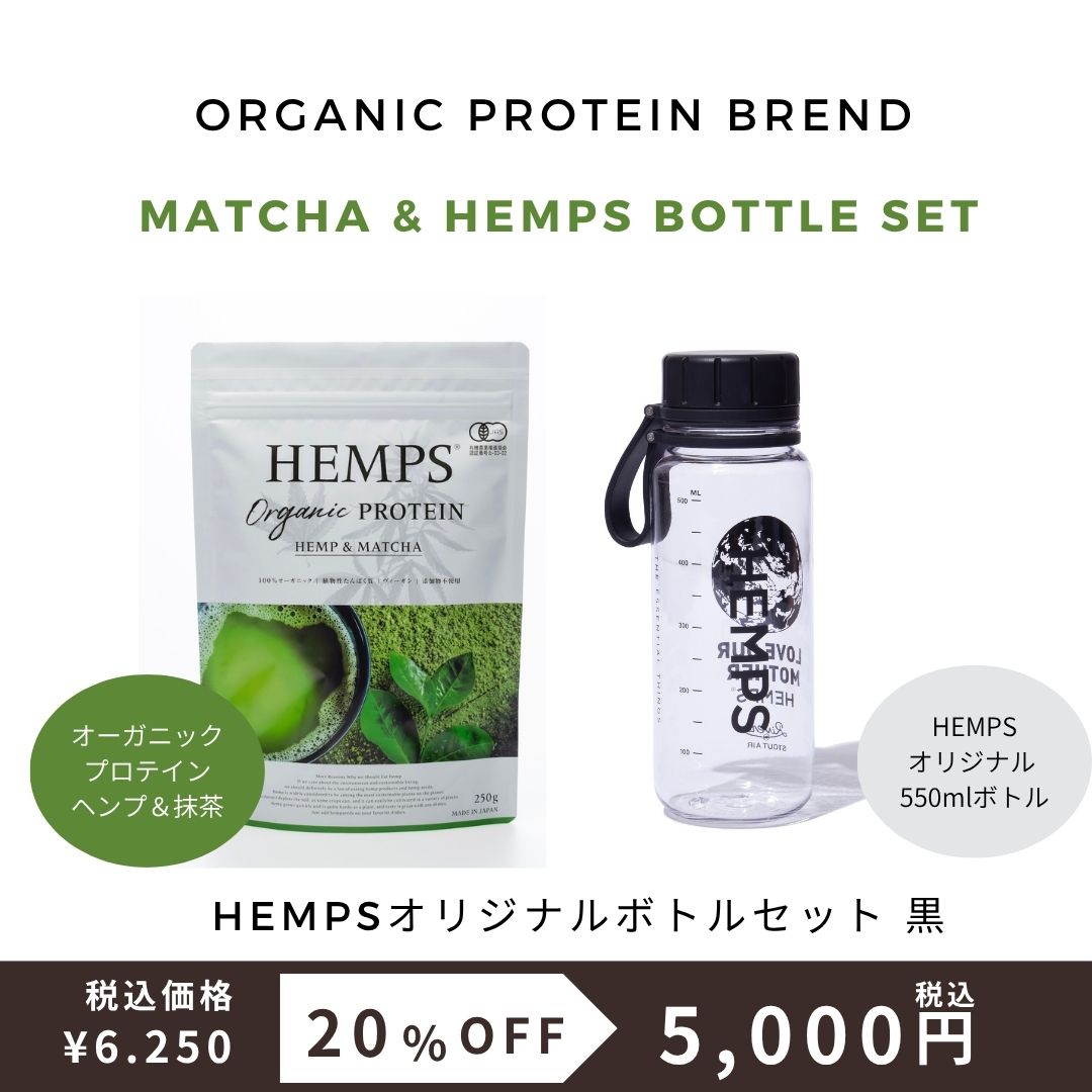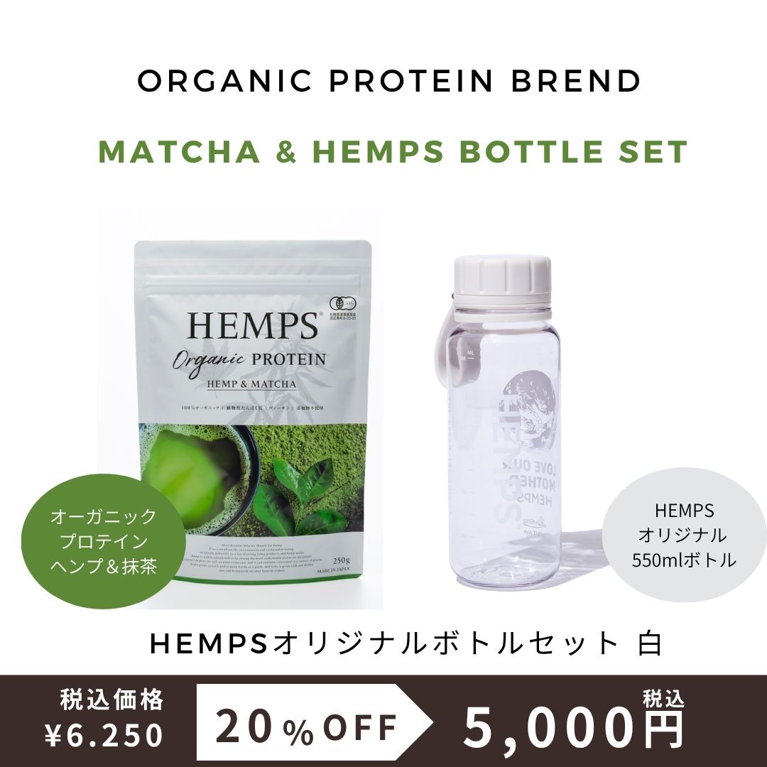 HEMPS オーガニックプロテイン ヘンプ&抹茶 250g+HEMPSオリジナルスタウトエアボトル白付