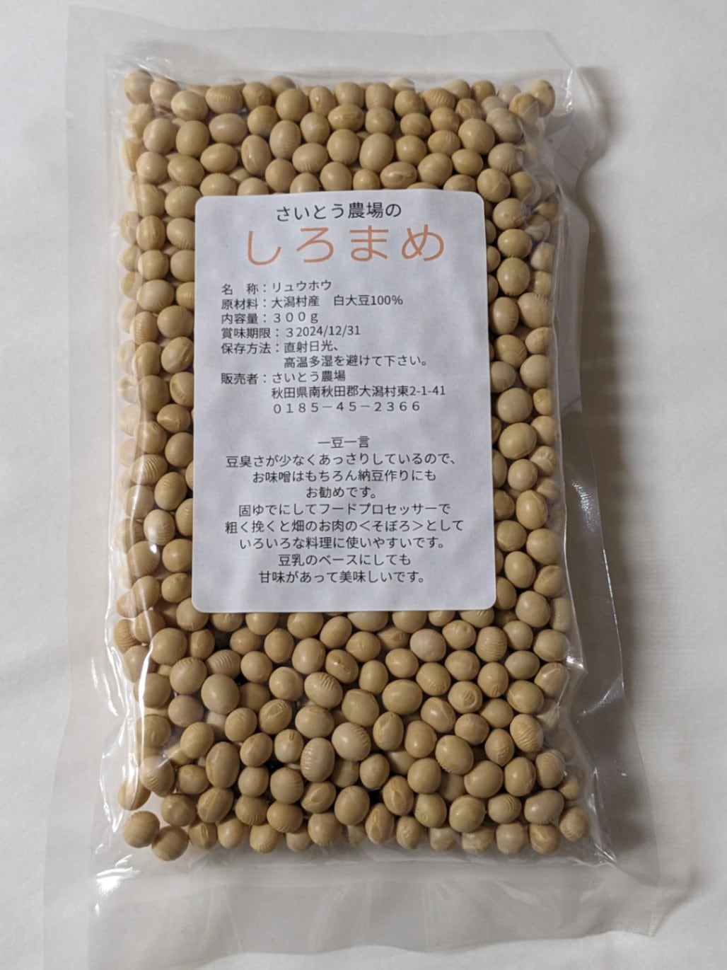 自然栽培 無農薬 無肥料 白大豆 りゅうほう 300g