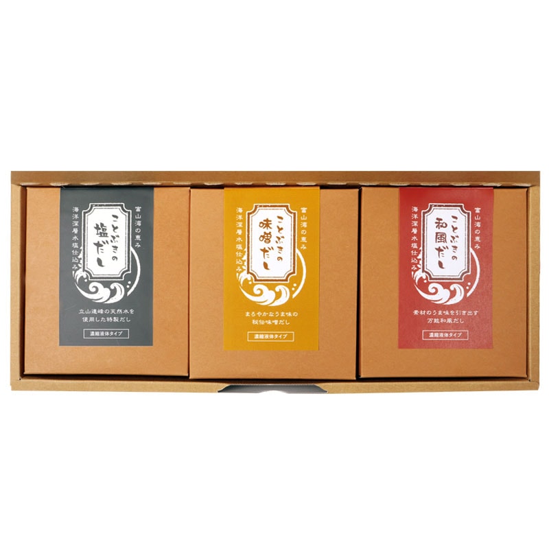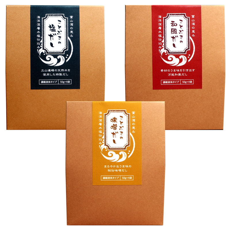 トリプルスリー:「ことぶきのだし 選べるセット(塩だし/味噌だし/和風だし)」