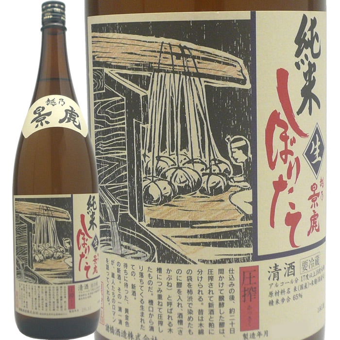 日本酒 越乃景虎 純米しぼりたて1.8L 諸橋酒造 日本酒 純米酒 季節限定酒