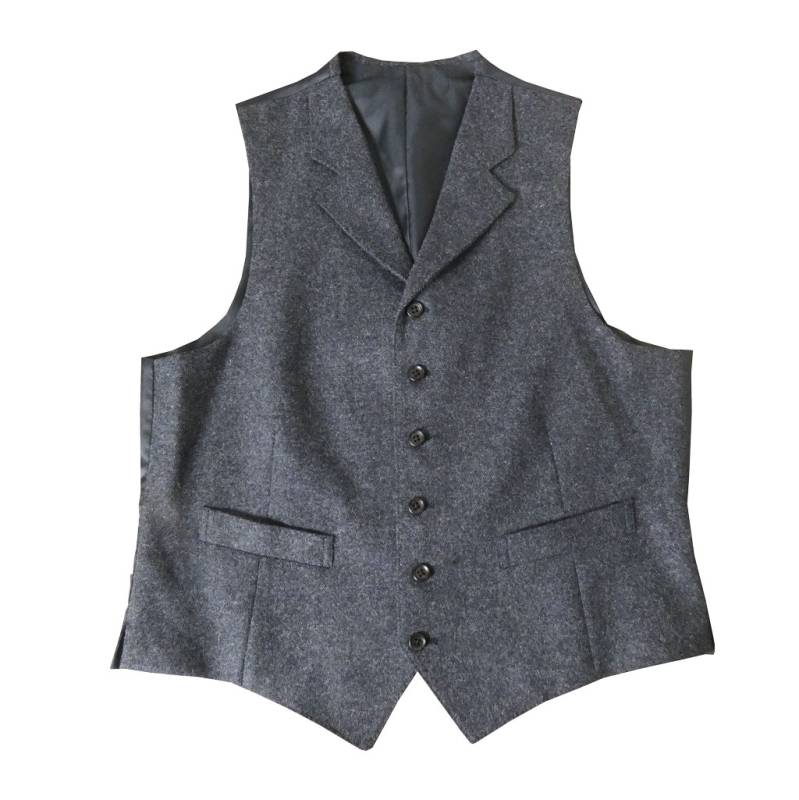 オッドベスト ジレ メンズ 秋冬 ウール100% 黒ヘリンボーン 1909 A4