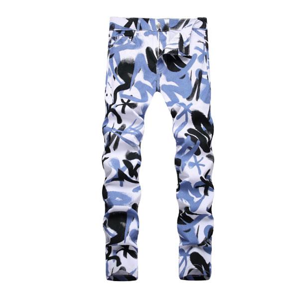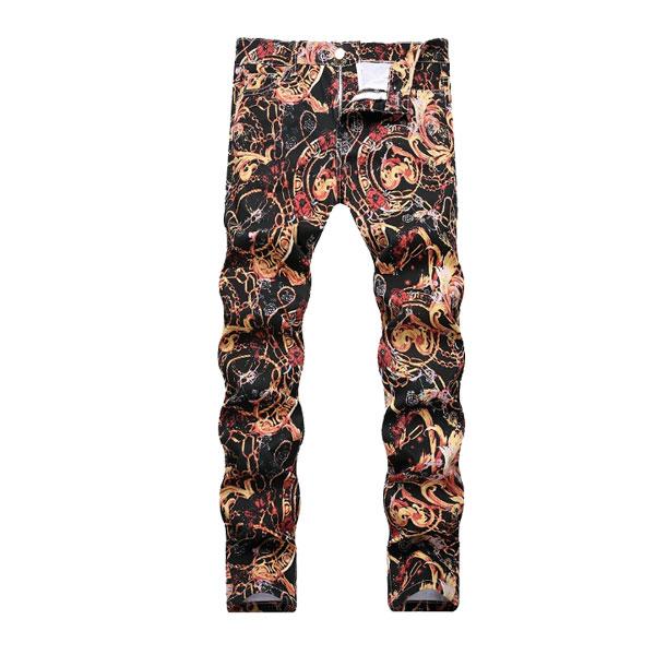 メンズ 総柄 プリント デニム ジーパン ジーンズ スキニー パンツ ボトムス ヒップ ウエスト スリム フィット ストリート系 ...