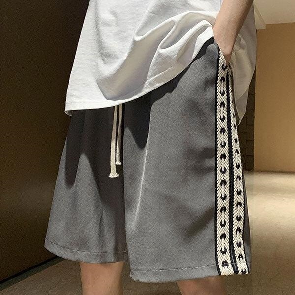 カジュアルパンツ ゆったり 速乾性 サイド編み柄 ポケット付き メンズ ボトムス ハーフパンツ ショートパンツ 短パン スポーツ ...