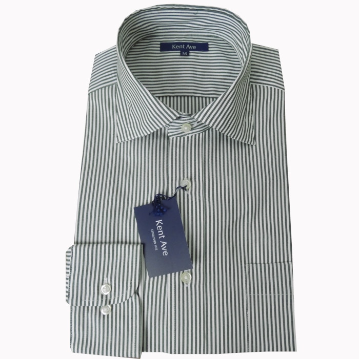 Kent Ave(ケントアベニュー) 長袖ワイドカラーシャツ メンズ カーキ系 ストライプ 1744 M
