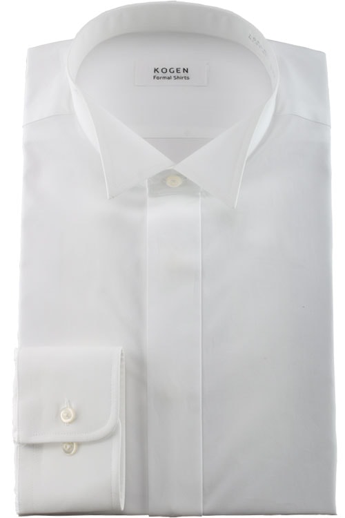 ウィングカラーシャツ フォーマル メンズ ドレスシャツ 比翼 白無地 綿100%